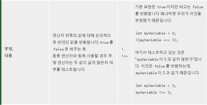 부정기호 역시 ! 는 기존과 같지만 !== << 는 =을 하나 더 써줘야한다.