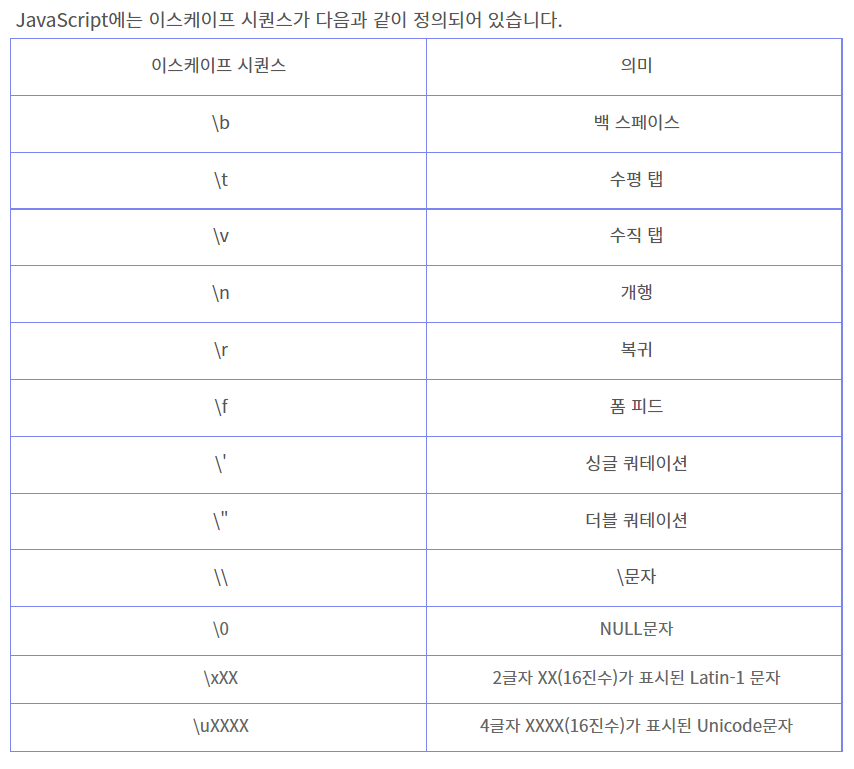 javascript 이스케이프 문자 본문