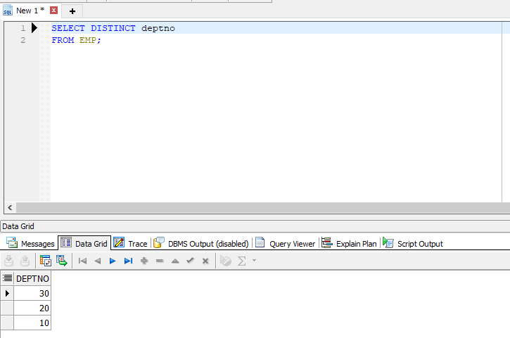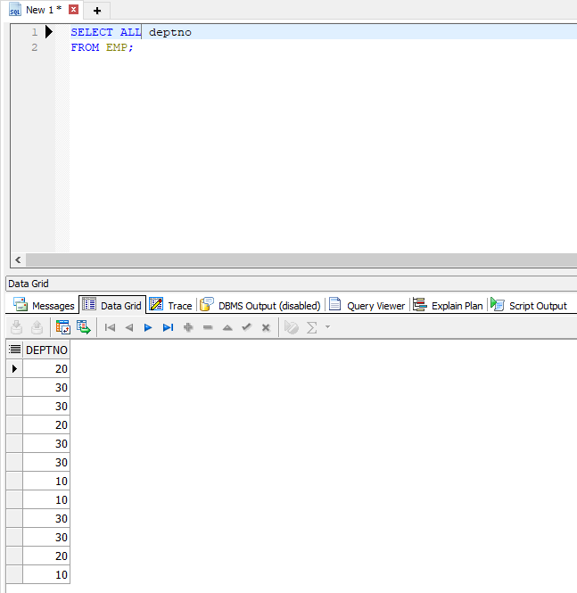 ALL과 반대로 중복값을 제거해서 출력하는 DISTINCT이다.
