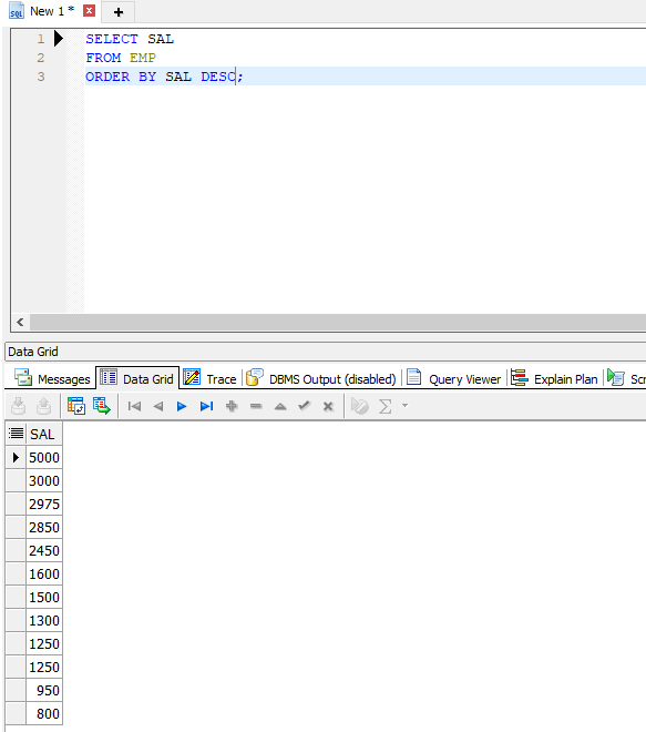 두번째로 명시된 SAL열 내림차순으로 정렬합니다.