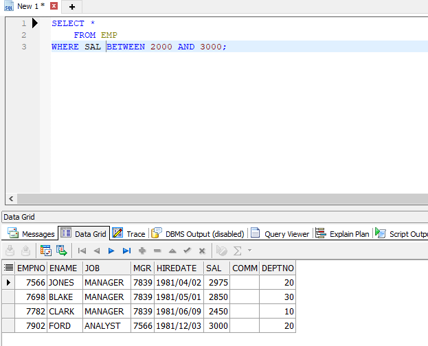즉 급여가 2000~3000인 사원 데이터를 조회해야한다면